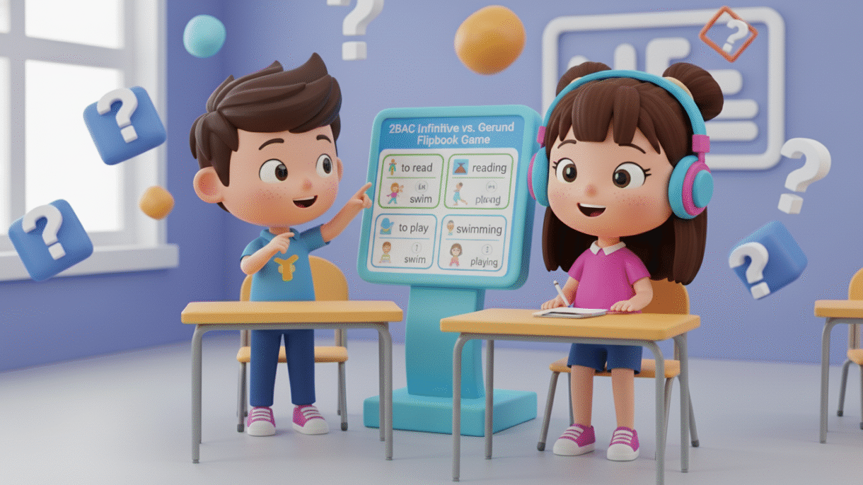 An interactive flipbook to practice Infinitive vs. Gerund. Click the button below to play.